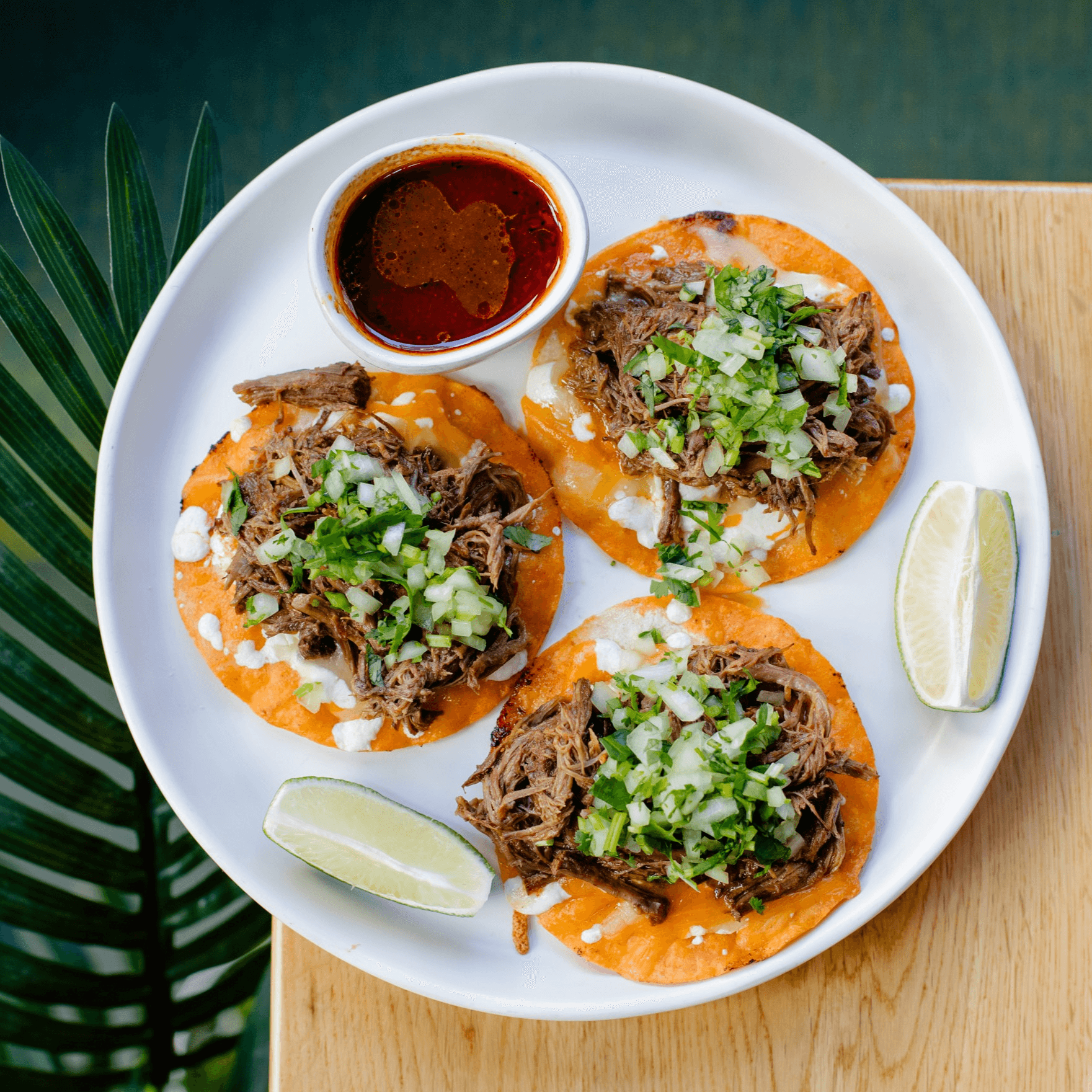 Braised Short Rib, Birria Jus, Cilantro, Raddish, Pepper Jack & Cheddar.