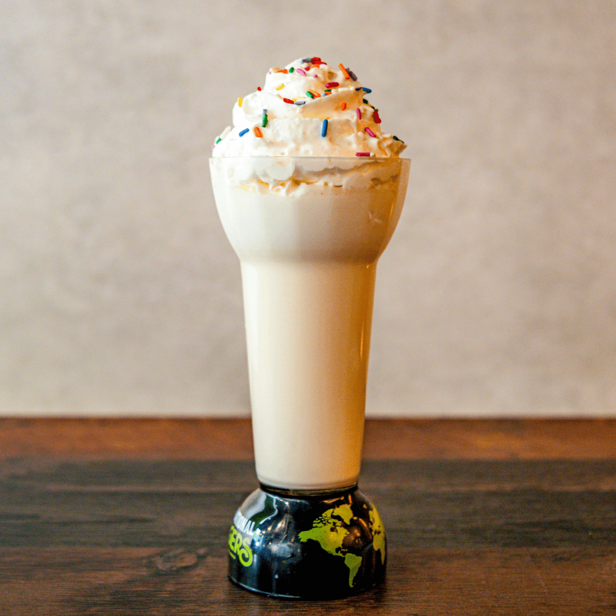 Classic Vanilla ice cream blended with milk topped with whipped cream