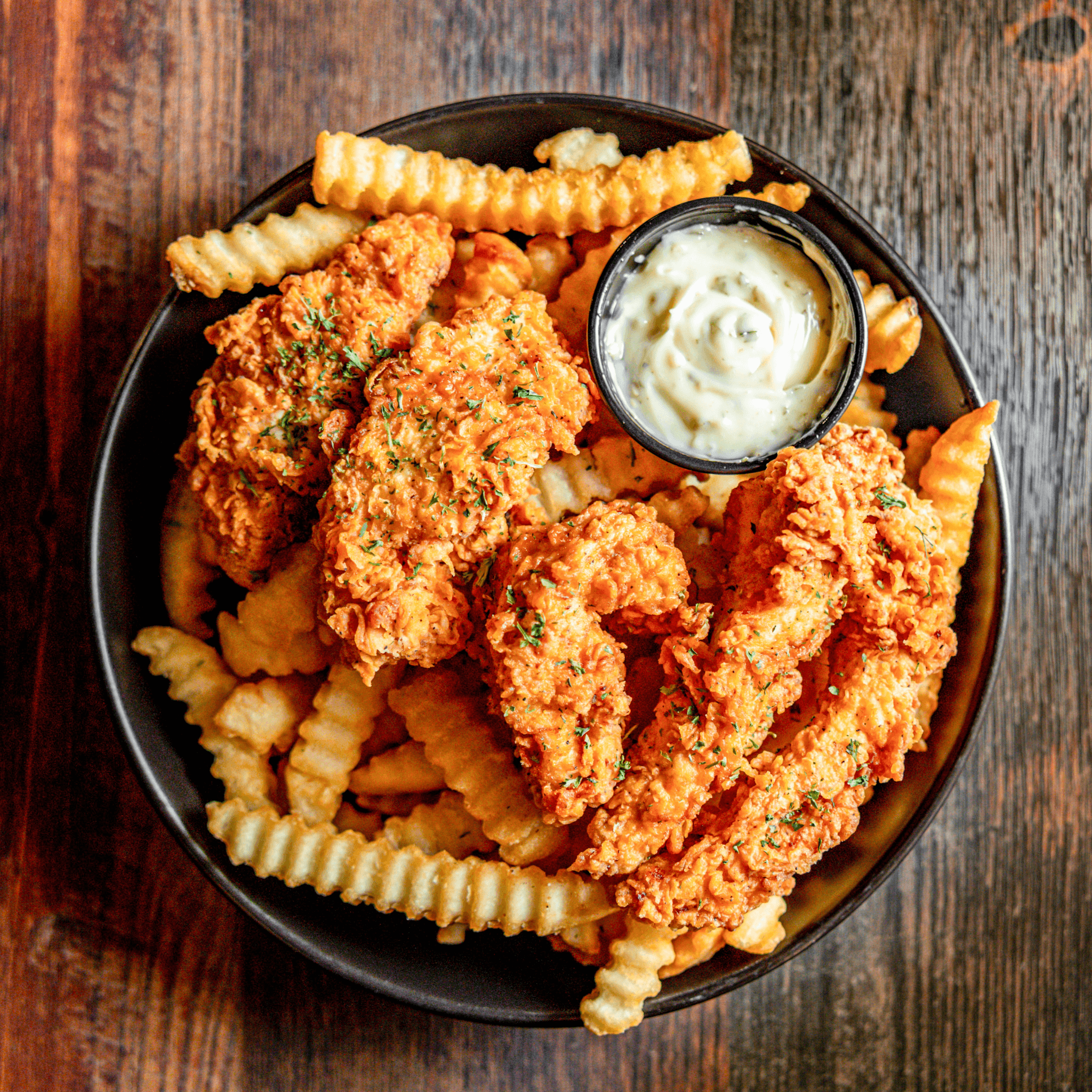 Crispy chicken roasted corn, Chipotle mayo, cilantro-jalapeno onions, and cabbage slaw.