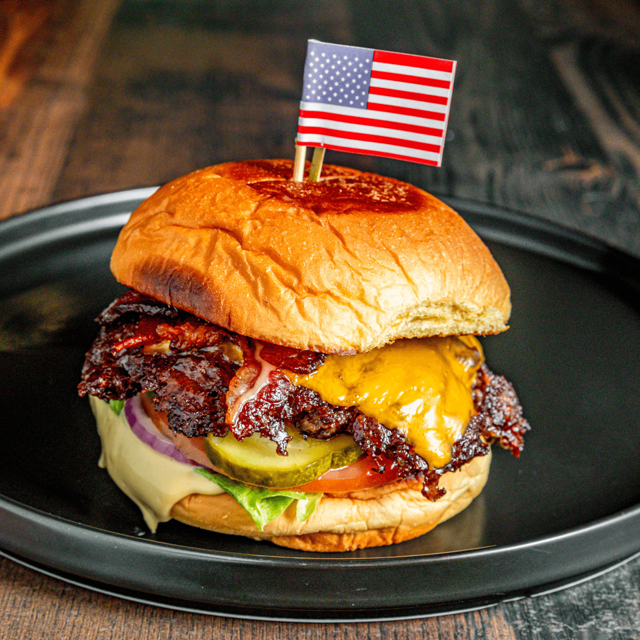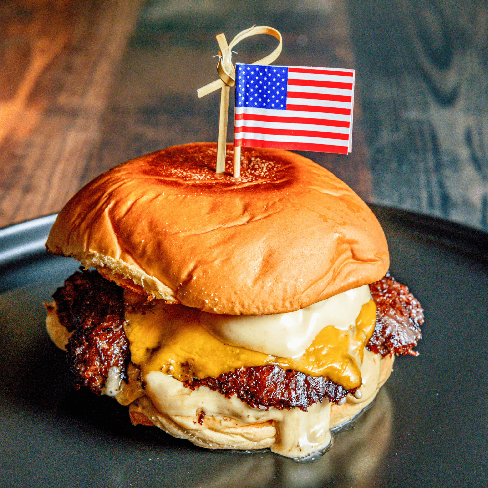 Premium beef, American cheese, kosher pickles, and classic American sauce.