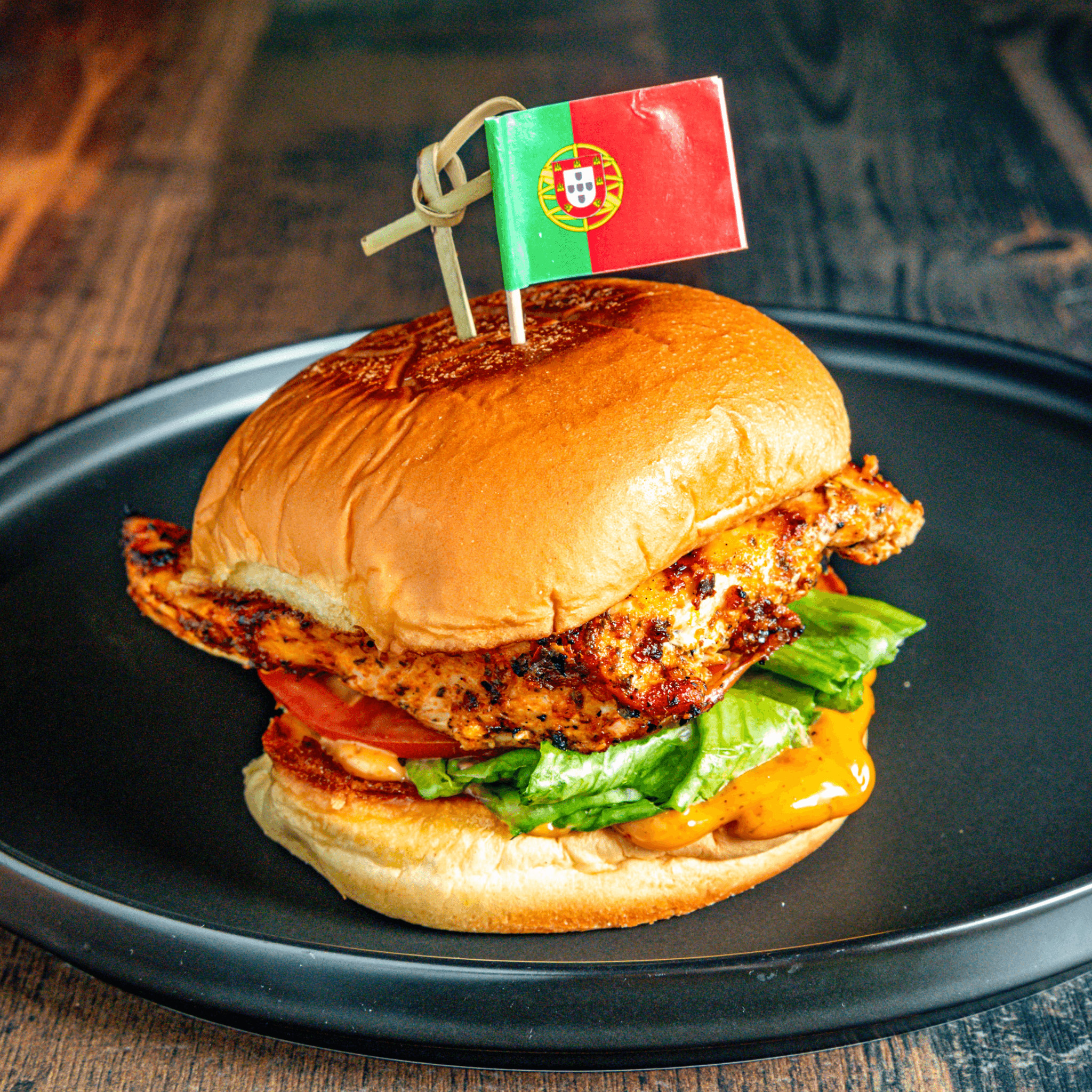 Grilled chicken breast marinated in Peri Peri spices, with lettuce, tomato, red pickled onions, and Peri Peri sauce.