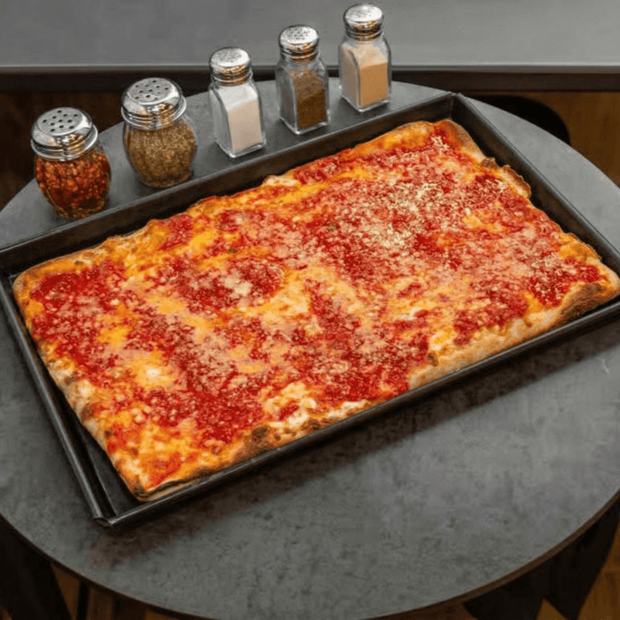 Sauce, fresh mozzarella, parmigiano reggiano, EVOO & basil