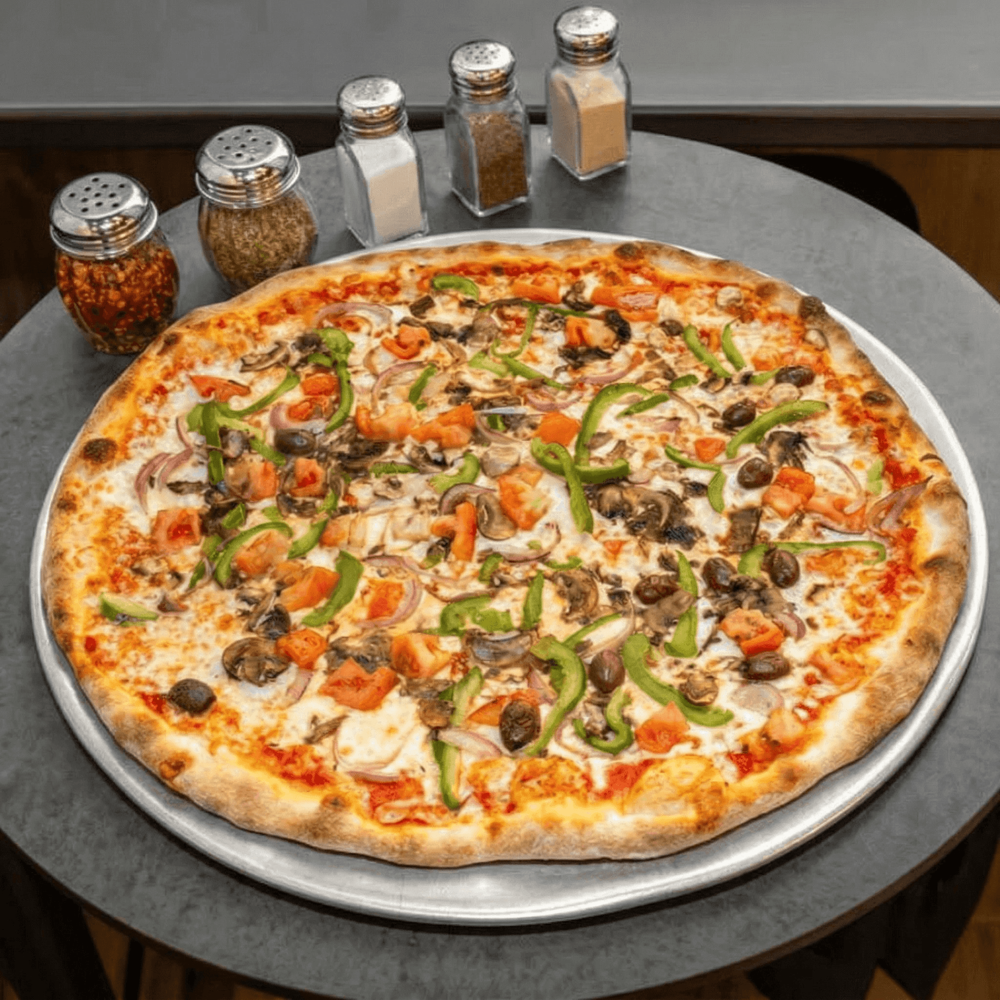 Olives, peppers, tomatoes, onions, mushrooms & mozzarella