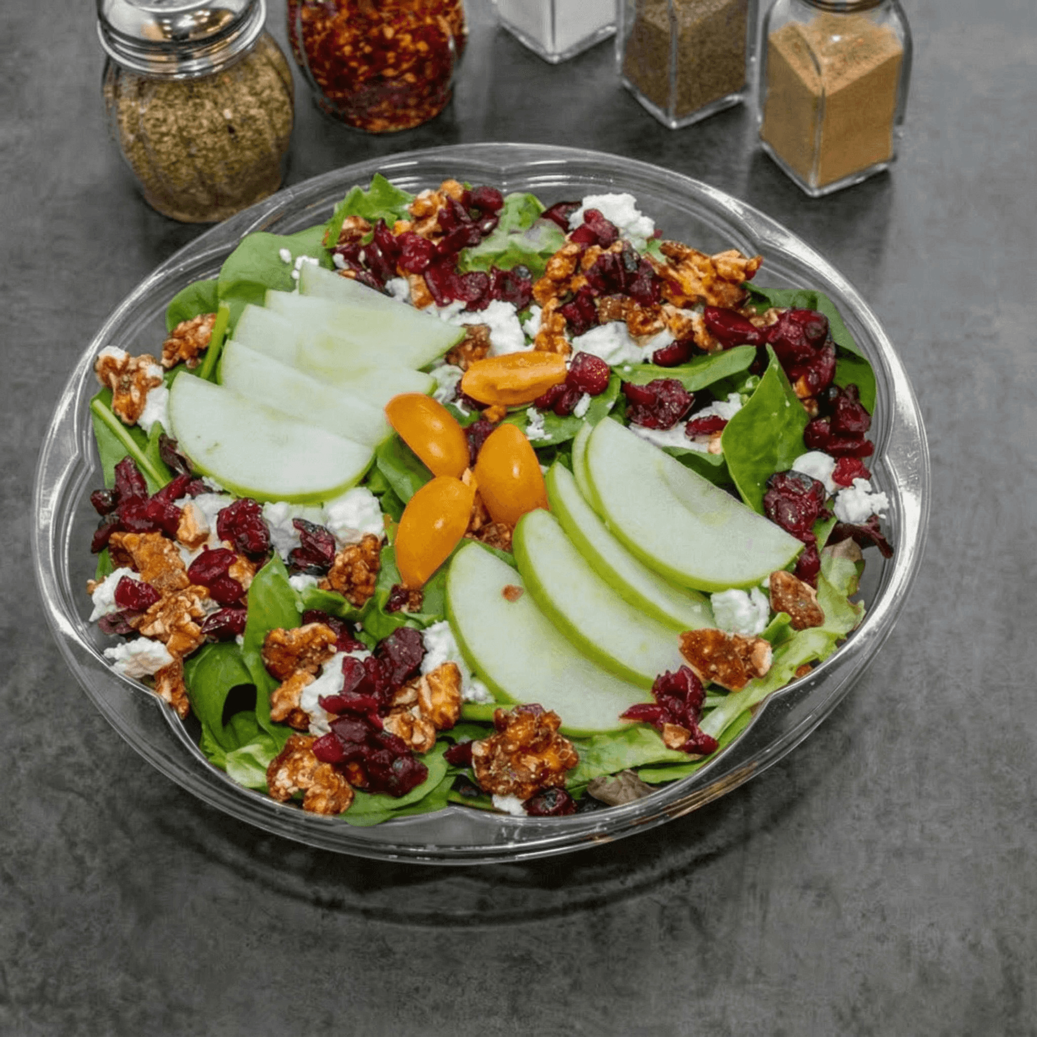 Mixed greens, granny smith apples, craisins, goat cheese, candied walnuts & balsamic vinaigrette