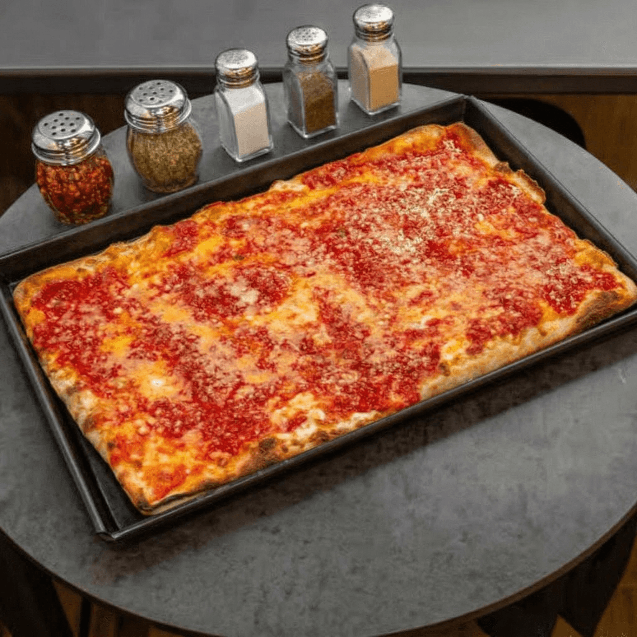 Sauce, fresh mozzarella, parmigiana reggiano, EVOO & basil