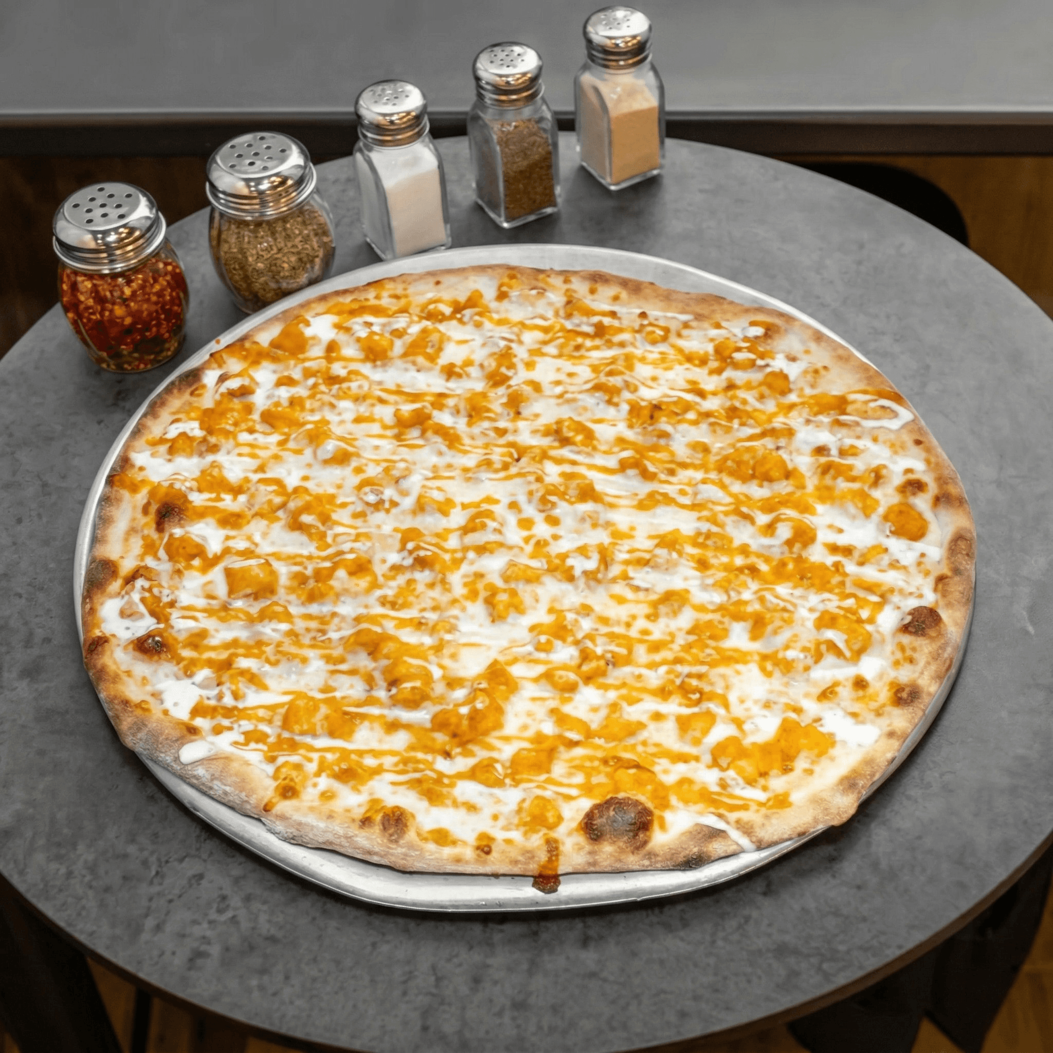 Spicy chicken, frank's buffalo sauce, mozzarella & blue cheese dressing