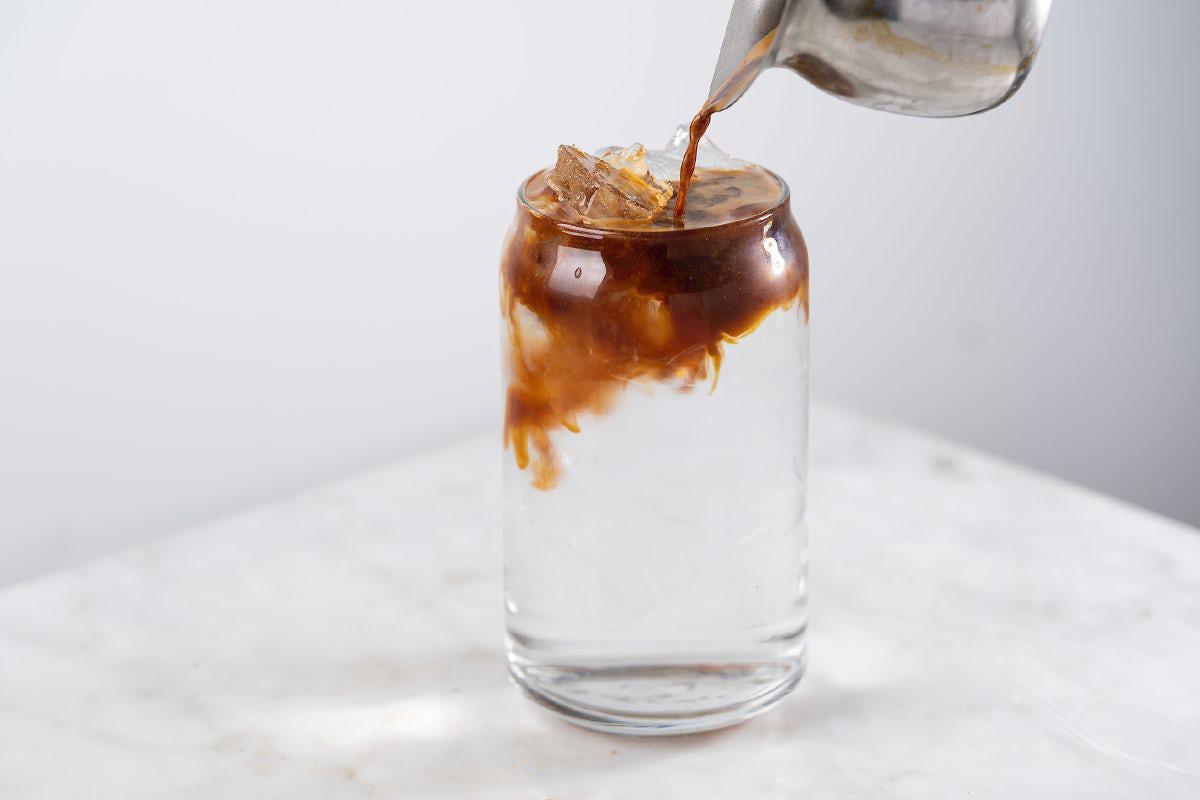 A stronger, less diluted spin on an iced latte – two espresso shots with ice and milk.
