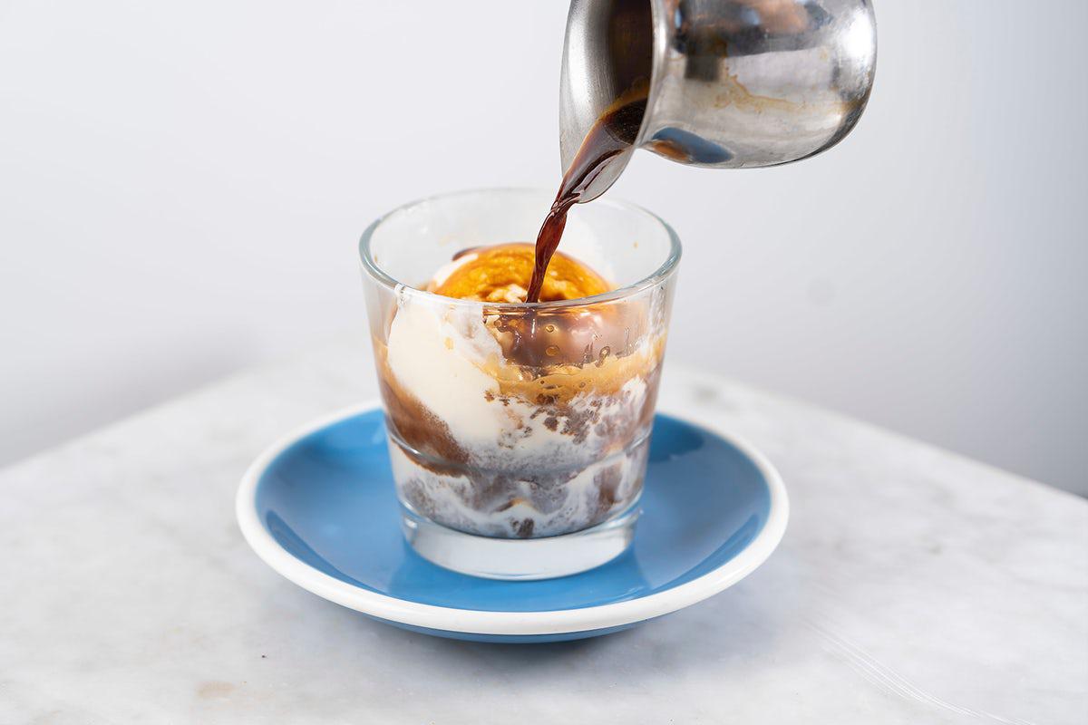 A double shot of espresso with vanilla ice cream and your choice of milk.
