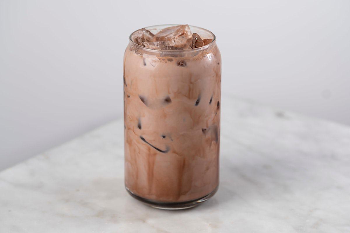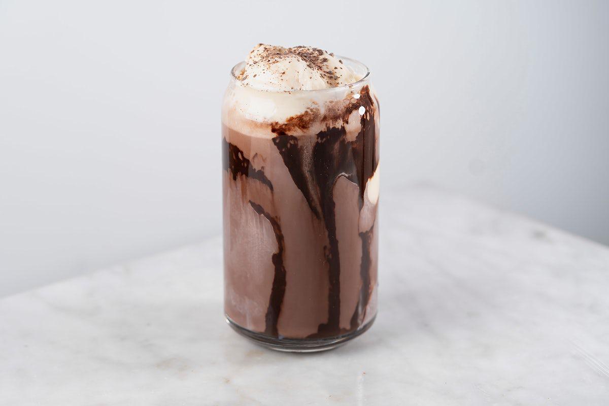 Double shot of espresso and cocoa spun in a pitcher with your choice of milk, poured over ice.
