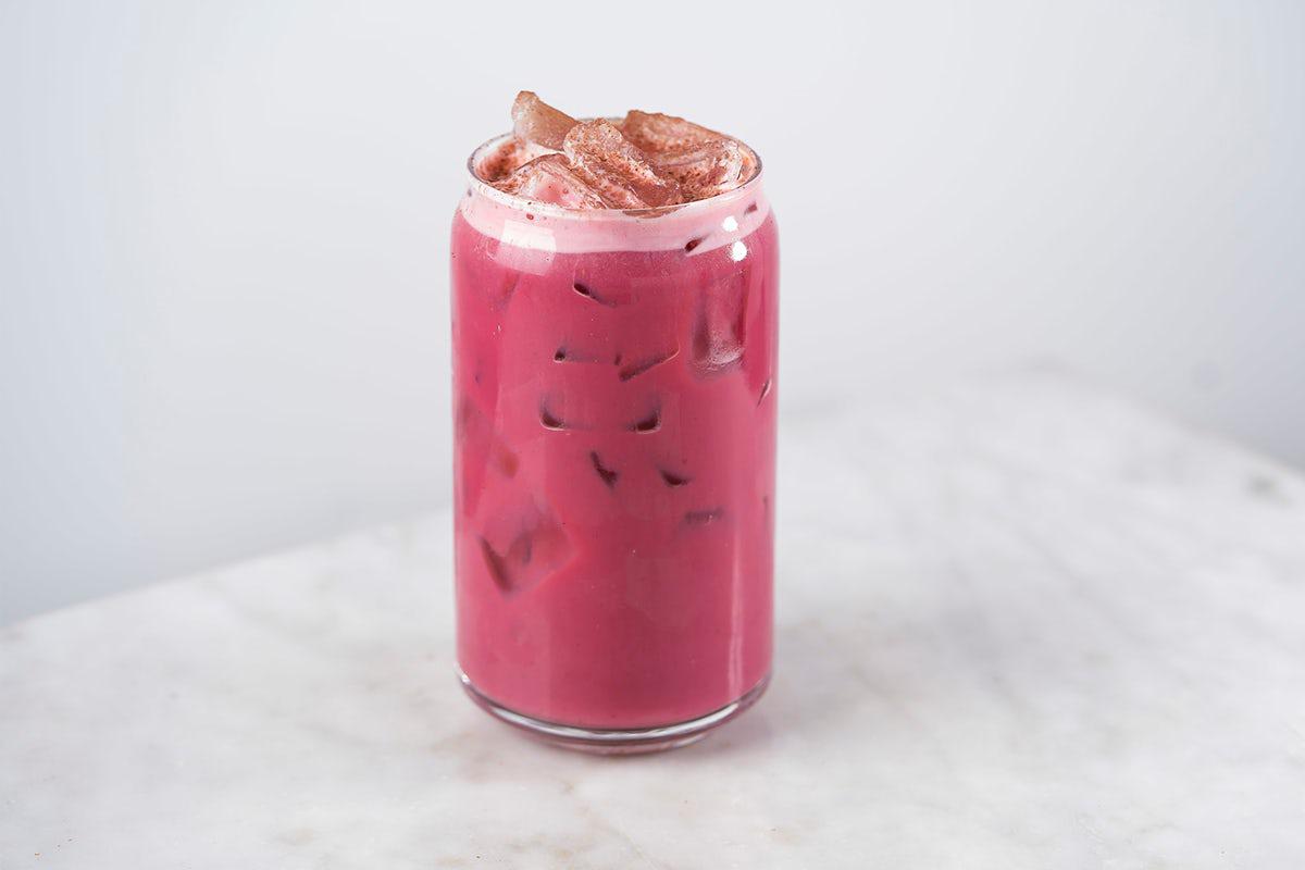 Dehydrated beet powder that is rich in antioxidants, and good for digestion. This drink is married with a dusting of cocoa and almond milk.