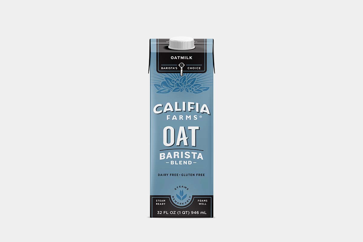 1QT Califia Barista Edition Oat Milk. Vegan, Gluten-Free, Kosher, & Dairy-Free and made with whole rolled, gluten free oats grown in North America. This oat milk steams beautifully, perfectly pairs with coffee, and tastes dang-good by itself with no gums or stabilizers.