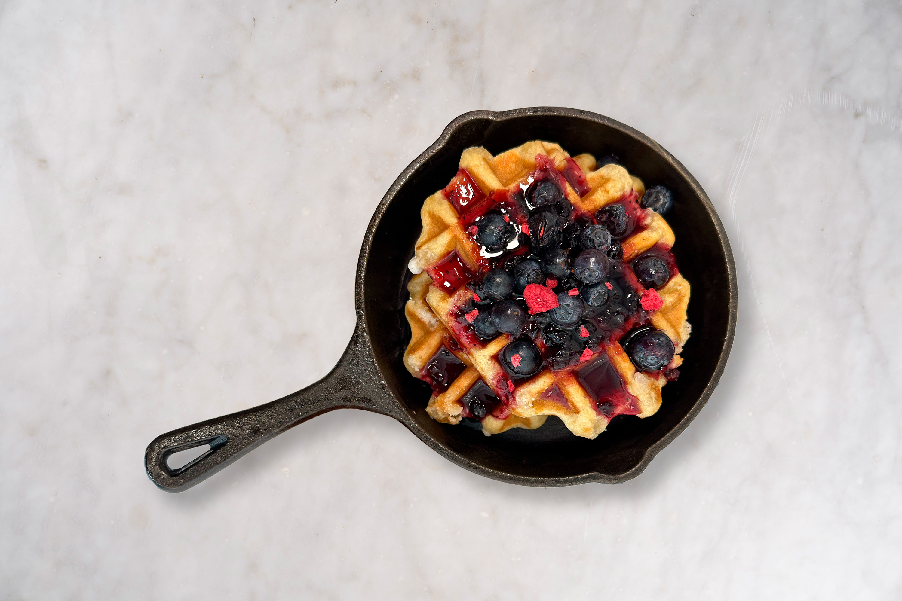Waffles with blueberry compote, fresh blueberries, freeze dried raspberries & maple syrup G= Contains gluten, D= Contains dairy, E= Contains egg, S= Contains soy