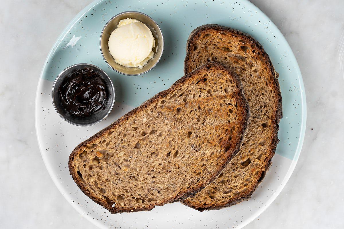 Thick cut multigrain served with choice of Vegemite & butter, jam & butter or almond butter. Allergens: G = Contains gluten, S = Contains soy, SE = Contains sesame