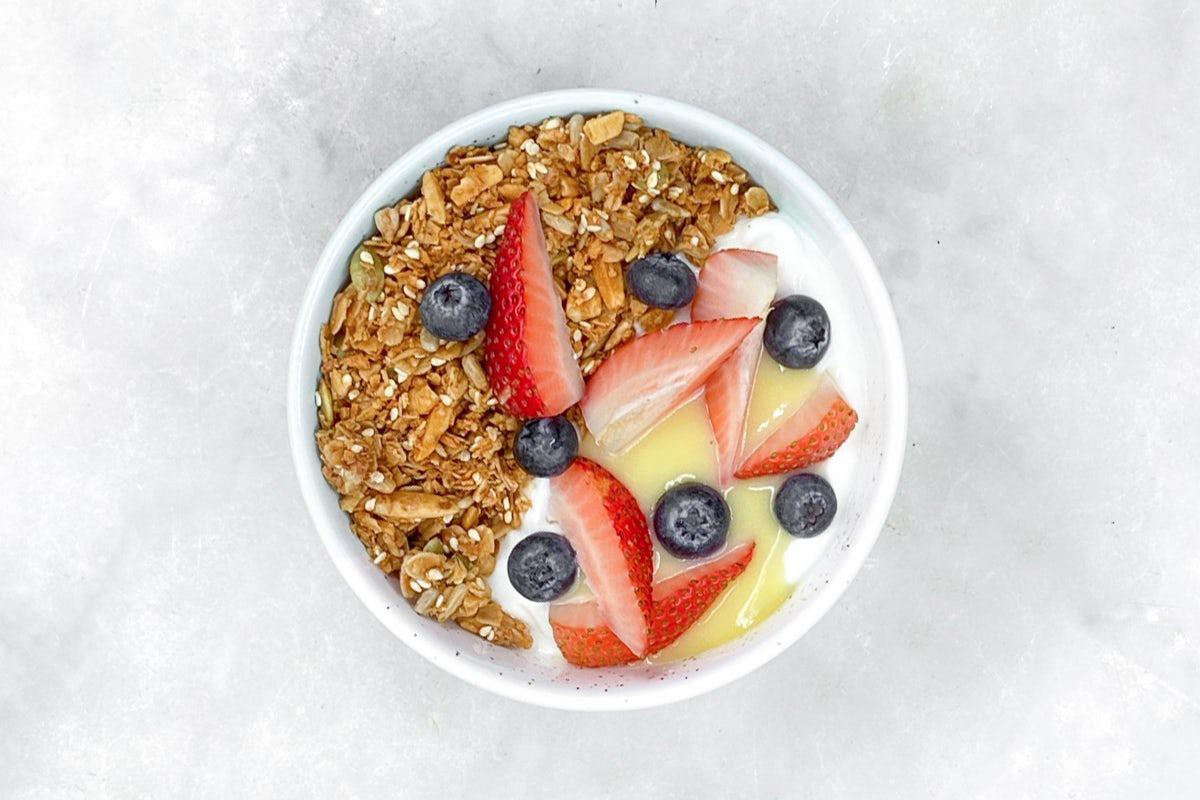 Our GF granola served with Greek yogurt, lemon curd & fresh berries. Allergens: GF = Gluten free, D = Contains dairy, N = Contains tree nuts, SE = Contains sesame