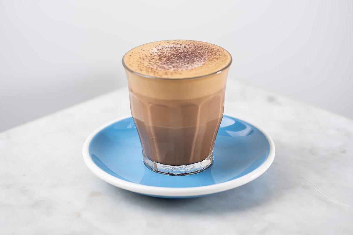 A stronger, less diluted spin on a flat white – two shots of espresso in a 4.5oz cup with steamed milk and velvety microfoam, similar to a European Cortado.