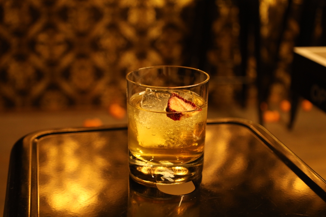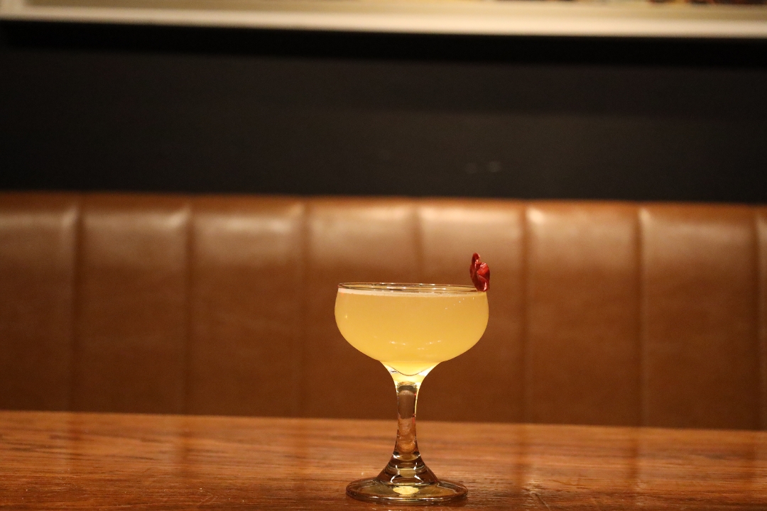 Bison Grass Vodka, Blended Scotch, Gochujang, Honey, Grapefruit Acid, Carrot Eau De Vie, Chile Tincture