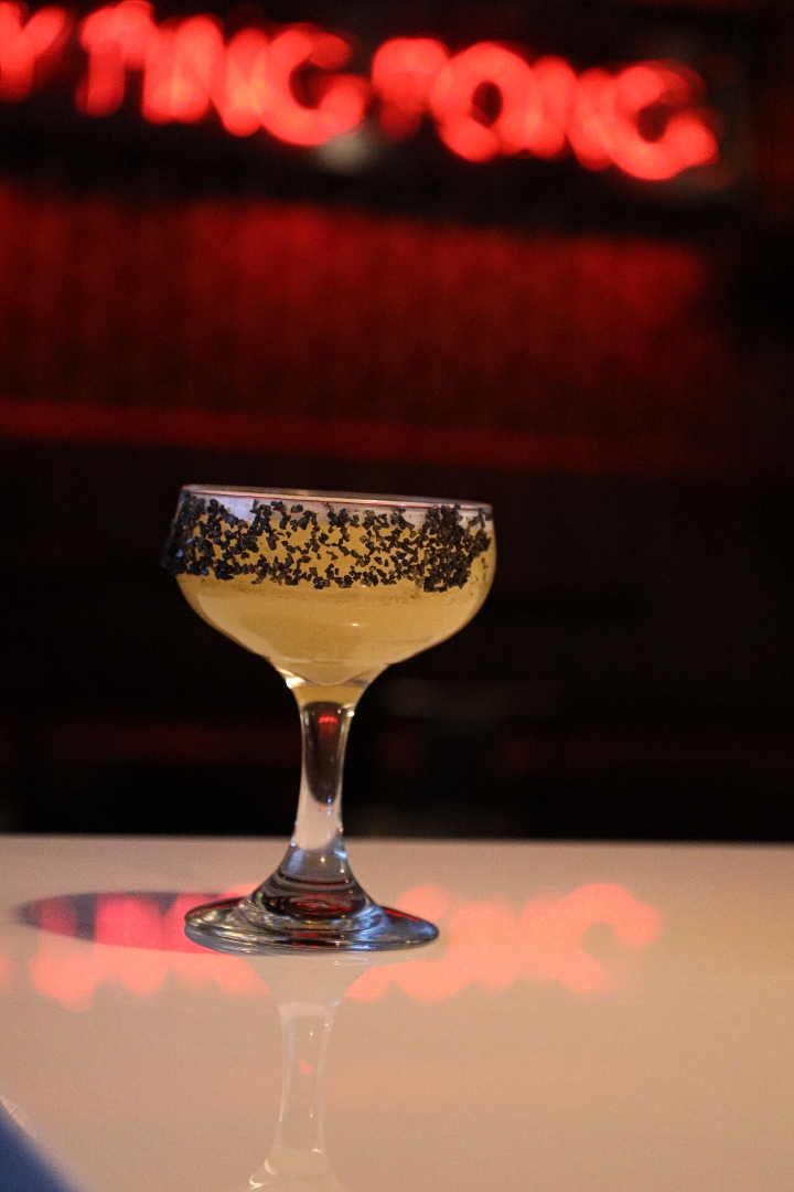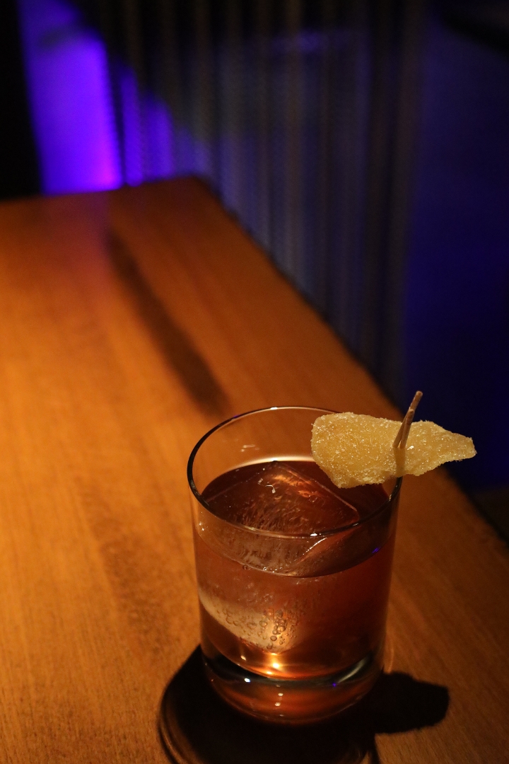 Japanese Rice Whiskey, Rye Whiskey, Dry Vermouth, Benedictine, Sesame Oil, Ginger, White Miso, Bitters