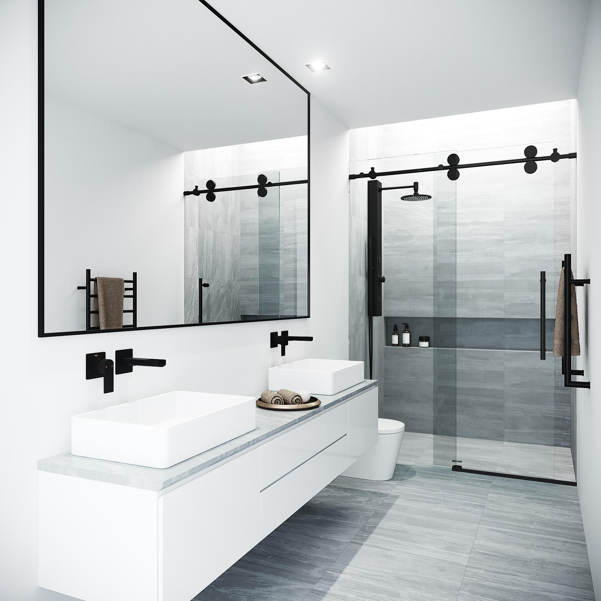 With its classic roller sliding door and sleek modern design, the VIGO Elan Frameless Sliding Shower Door provides the ultimate in contemporary design for your bathroom. This shower door is crafted with quality tempered glass and 304-series stainless steel hardware and features an eye-catching round roller disk sliding system and sleek door handle. For a custom look, this door can be installed to slide open left or right.