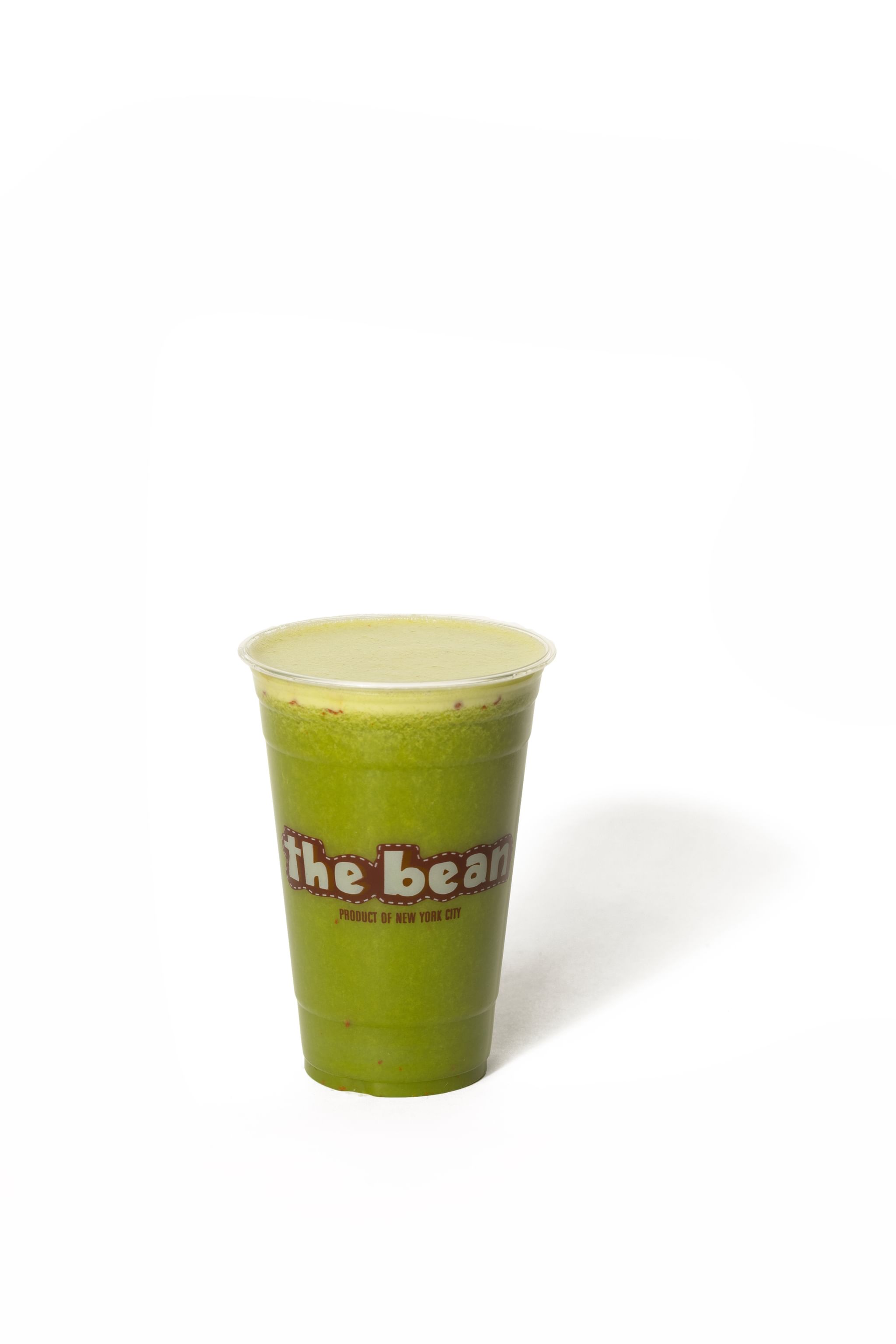 Kale, spinach, pineapple, peach, goji berries, banana and organic pressed apple juice