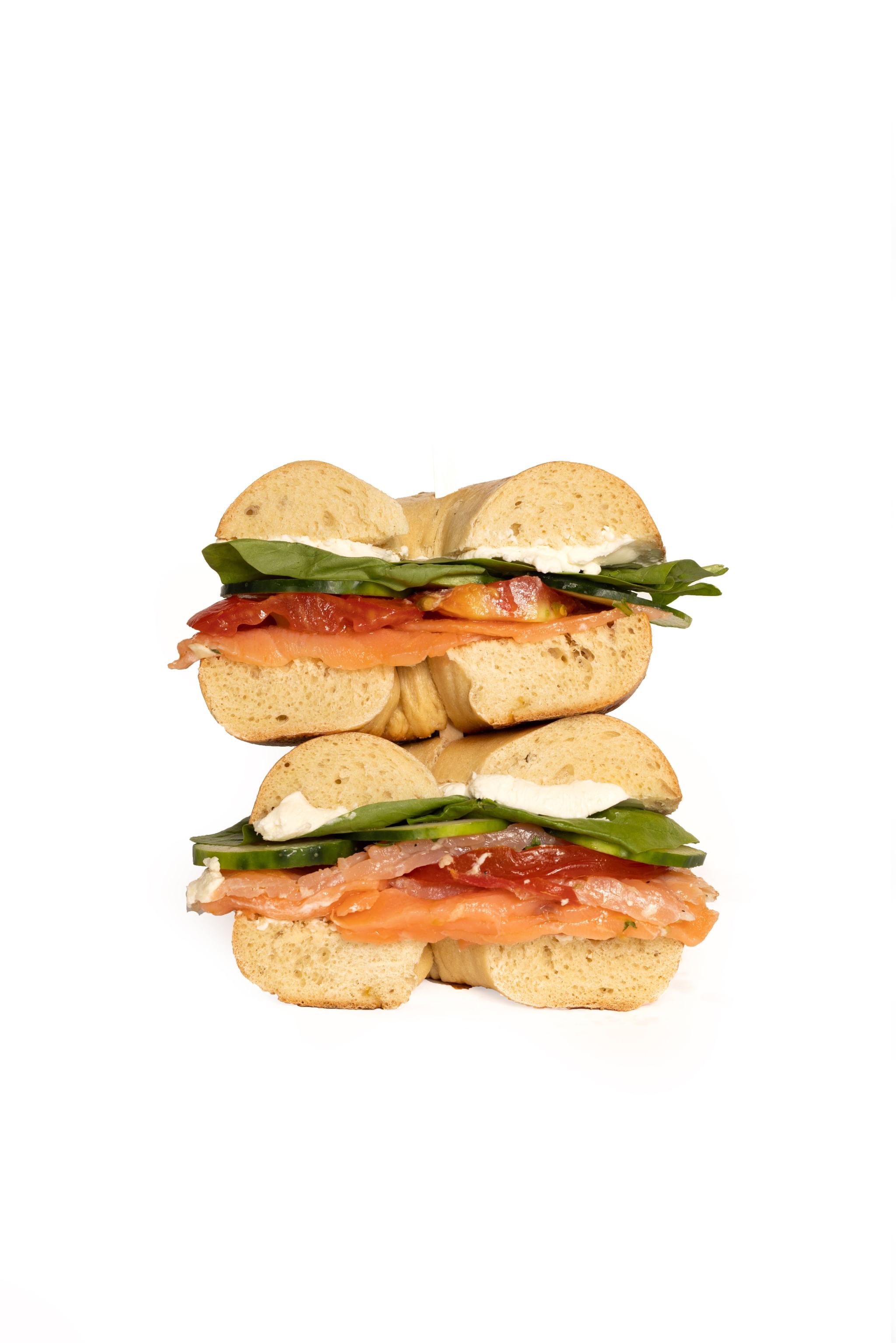 Smoked salmon, cucumber, cream cheese and tomato on a bagel