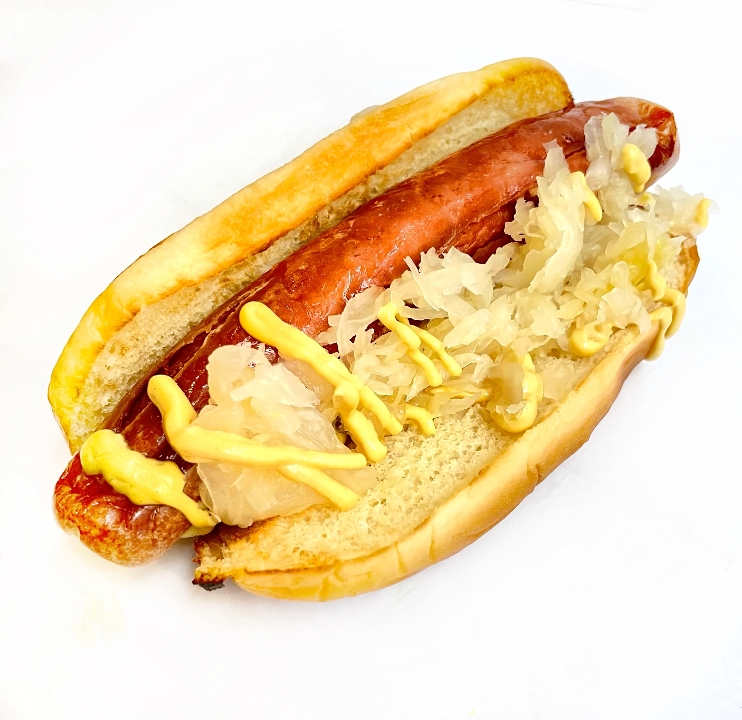 Crispy Fried Weiner, Kraut, Spicy Dijon Mustard **CONTAINS: PORK & WHEAT**