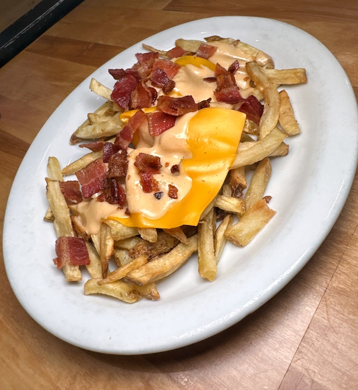 Handcraft Fries with Melted American Cheddar and Beer Cheese with Bacon