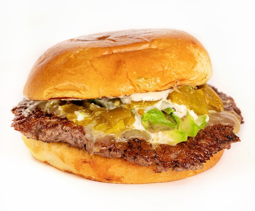 Single Smashed Beef Patty, House Spice Blend, Monterey Jack Cheese, Roasted Hatch Chile, Avocado, Lime Aioli, Brioche Bun